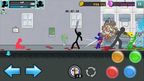 愤怒的火柴人,其逼真的战斗动作和130多种格斗技巧,带来极致的动作体验!游戏新加入了特殊的空气连击,使你能够同时击败所有敌人!